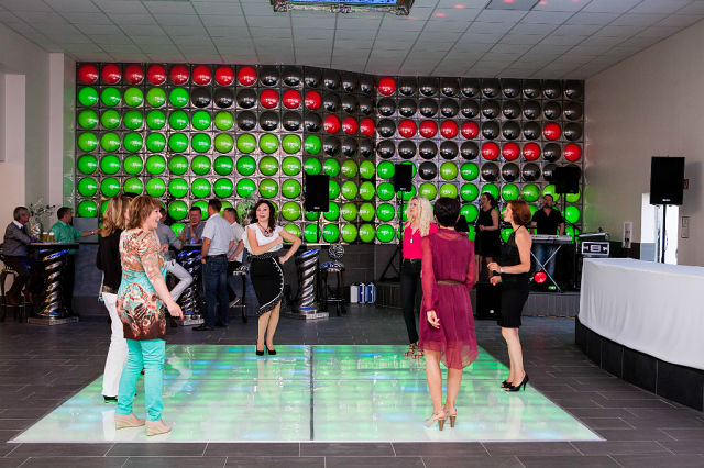 Alle Bauarbeiten sind abgeschlossen, die Eventbeleuchtung funktioniert einwandfrei, in der Küche wird gekocht, in der Theke fließt das Bier es kann gefeirt weden.